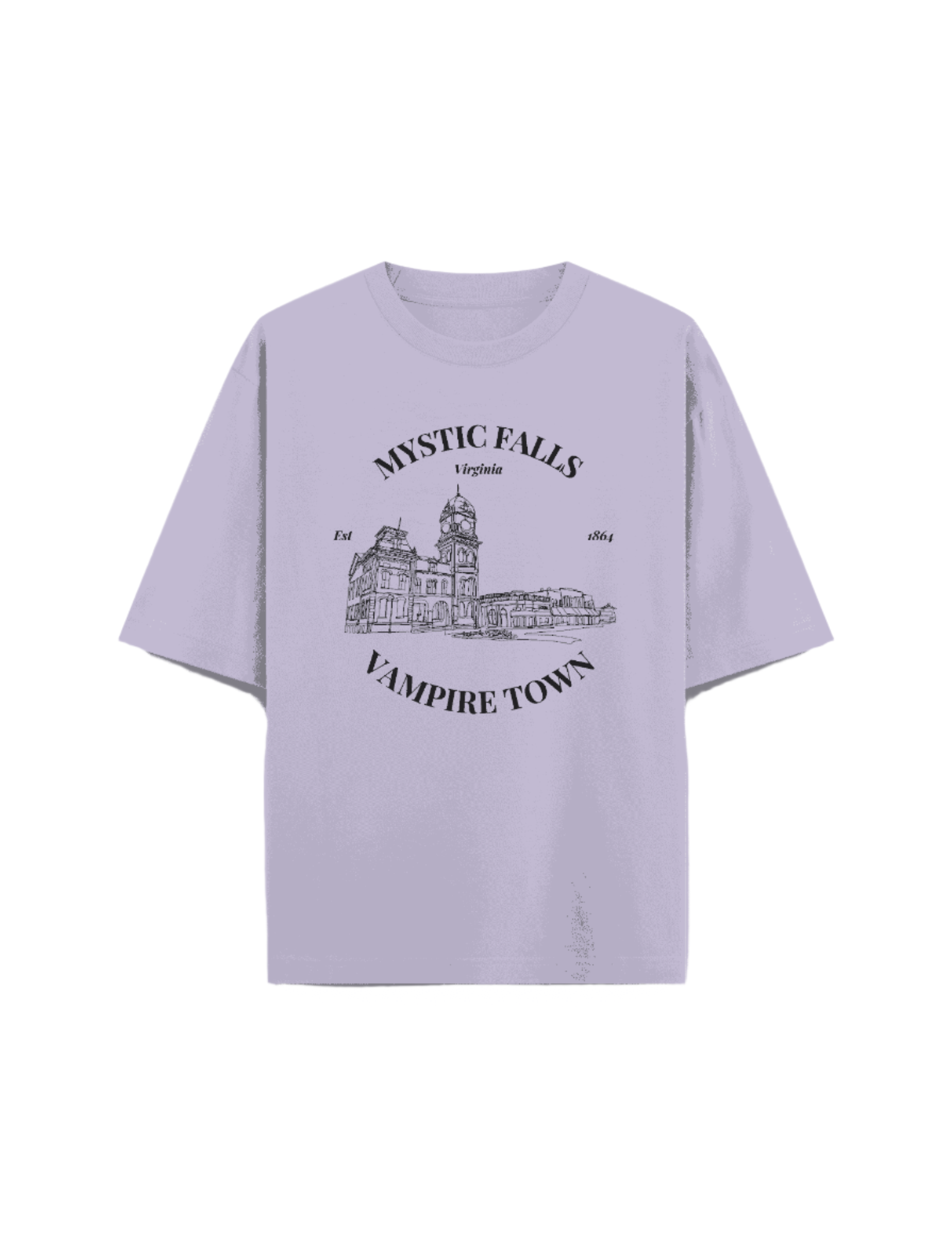 A love letter to the town that held a thousand secrets—this tee captures the eerie charm of Mystic Falls in a delicate linework sketch. Romantic, dramatic, and a little haunted, it’s made for fans who know that danger always looks better under dim lights.