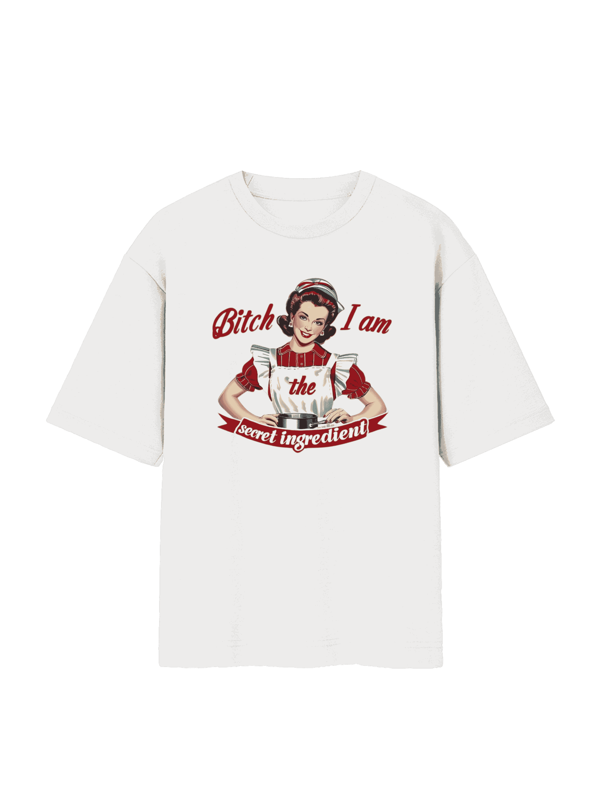 Who needs subtlety when you’ve got spice? This retro-inspired tee brings vintage housewife glam with a wink—and a warning. You're not just cooking, you're the whole damn flavor.